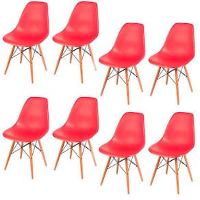 Kit com 8 cadeiras cheias de design e moda sem deixar a simplicidade de lado. A Cadeira Charles Eames é ideal e perfeita para qualquer tipo de ambiente. Possui o acabamento fosco e base em madeira.