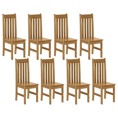 A cadeira Bielefeld é em Madeira Maciça com encosto ripado que une conforto, estilo e durabilidade. Estrutura com travessas reforçadas para maior estabilidade no uso diário. O acabamento em verniz acetinado realça os tons da madeira e protege a peça. Seu visual clássico combina com salas de jantar, cozinhas e ambientes rústicos ou coloniais. Ideal para compor conjuntos com mesas clássicas. Versátil, pode ser usada também em escritórios e varandas gourmet. Acabamento: Verniz Acabamento da Estrutura: Pintura UV Altura do assento até o chão: 45 cm Ambiente Principal: Sala de Jantar codigo_ean: 7900288252623 Complexidade da Montagem: Baixa: pode ser montado por uma pessoa sozinha Cor: Nogueira Cor do Produto: Nogueira Design da Cadeira: Outras Sem Estofamento Dobrável: Não Escala de Brilho: Semi-Brilho Giratória: Não Informações Complementares: Possui cantos arredondados e acabamento com Pintura UV e Verniz Acetinado Atóxico. Encosto com ripado, aumentando a estabilidade e conforto. Itens Inclusos: 8 Cadeiras, Manual de Montagem e Kit de Ferragens. Linha ou Coleção: Bielefeld Manual de Montagem e Instalação: https://cdn2.madeiramadeira.com.br/atributo/tabulae-moveis/3263758-6341-17598473985729.pdf Marca: Espresso Móveis Material Principal: Madeira Maciça Necessita Montagem: Sim Origem do Produto: Nacional Peso: 49,2 kg Possui Apoio para Braços: Não Possui Apoio Para os Pés: Não Possui Assento/Encosto Estofados: Não Possui Espaldar: Sim Quantidade de Itens: 8 Recomendações de Uso, Manutenção e Limpeza: Limpar com flanela ou pano macio seco, não utilizar produtos abrasivos, desengordurantes, álcool ou solvente. Sistema de Montagem: Parafuso, cavilha e cola. Tipo de Assento: Fixo Tipo de Encosto: Fixo Tipo de Madeira Maciça: Pinus