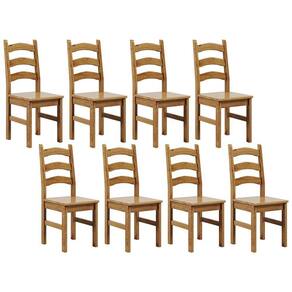 A cadeira Napoli é em Madeira Maciça com acabamento em verniz acetinado que realça os veios naturais da madeira. Estrutura com peças reforçadas para maximizar a estabilidade e durabilidade. Encosto em ângulo, assento ergonômico e confortável. Ideal para compor ambientes rústicos ou clássicos. Ótima opção para cozinhas e salas de jantar. Acabamento: Verniz Acabamento da Estrutura: Pintura UV Altura do assento até o chão: 45 cm Ambiente Principal: Sala de Jantar codigo_ean: 7900288252715 Complexidade da Montagem: Baixa: pode ser montado por uma pessoa sozinha Cor: Nogueira Cor do Produto: Nogueira Design da Cadeira: Outras Sem Estofamento Dobrável: Não Escala de Brilho: Semi-Brilho Giratória: Não Informações Complementares: Possui cantos arredondados e acabamento com Pintura UV e Verniz Acetinado Atóxico. Encosto com ripado em peças angulares, aumentando o conforto. Itens Inclusos: 8 Cadeiras, Manual de Montagem e Kit de Ferragens. Linha ou Coleção: Napoli Manual de Montagem e Instalação: https://cdn2.madeiramadeira.com.br/atributo/tabulae-moveis/3264028-6341-17598486641792.pdf Marca: Espresso Móveis Material Principal: Madeira Maciça Necessita Montagem: Sim Origem do Produto: Nacional Peso: 53,6 kg Possui Apoio para Braços: Não Possui Apoio Para os Pés: Não Possui Assento/Encosto Estofados: Não Possui Espaldar: Sim Quantidade de Itens: 8 Recomendações de Uso, Manutenção e Limpeza: Limpar com flanela ou pano macio seco, não utilizar produtos abrasivos, desengordurantes, álcool ou solvente. Sistema de Montagem: Parafuso, cavilha e cola. Tipo de Assento: Fixo Tipo de Encosto: Fixo Tipo de Madeira Maciça: Pinus