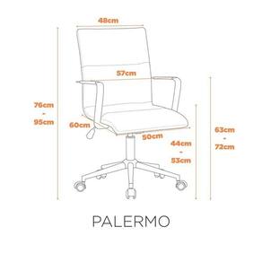 A cadeira Palermo é totalmente revestida em couro ecológico, incluindo seus braços, para maior conforto de quem estiver usando.