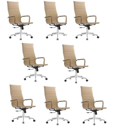 A cadeira Manhattan Presidente é toda revestida em couro ecológico com costuras horizontais, ela também possui sua base e detalhes em aço cromado, o que garante resistência e durabilidade à cadeira! Por possuir seus braços também revestidos em couro ecológico e possuir sistema relax, ela é super confortável para grandes espaços de tempo sentados. Altura do Conjunto: 113 cm Ambiente: null Ambiente Principal: Escritório Cor: Bege Informação Complementar: 8x Cadeira Esteirinha Presidente Giratória Estofada com Rodízios Espresso Móveis Cinza Largura: 56 cm Altura: 113 cm Peso: 12,15 kg Profundidade: 60 cm Necessita Montagem: Sim