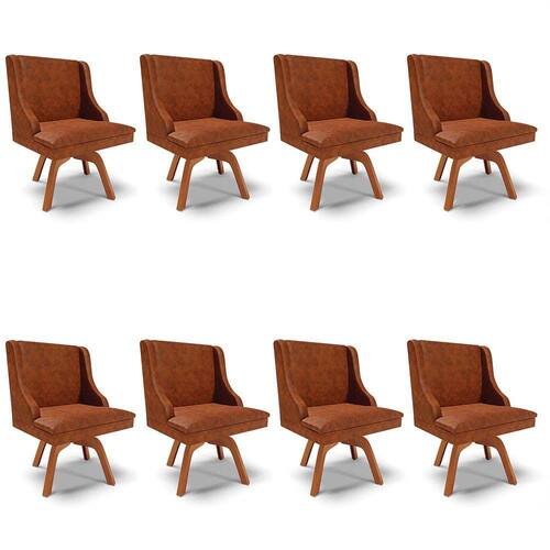 O Kit 8 Cadeiras Estofadas Base Giratória de Madeira Lia Sintético Premium Nozes, da Ibiza, é encantador e agrega um toque de sofisticação no ambiente! Vem conferir!