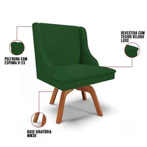 A Cadeira Estofada Lia possui design elegante e é ideal para quem busca aconchego e sofisticação na hora das refeições. A Base Giratória de Madeira é resistente e permite que se movimente com facilidade e ainda suporta até 120kg! Além disso, a Cadeira Estofada é produzida com Madeira Eucalipto de reflorestamento, ecologicamente correta e o estofado é composto em espuma macia D-23 e revestido em Veludo, tecido clássico, elegante, macio, agradável ao toque, além de resistente e durável é versátil e combina com vários estilos de decoração!