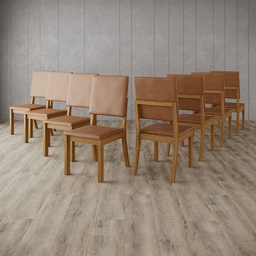 O(a) Kit 8 Cadeiras Estofadas para Mesa de Jantar Milla Plus Natural/Corano CaraMarromo é produzido em MDF e MDP na escala de brilho Fosco, e possui um grau de dificuldade de montagem: Médio.