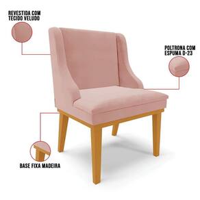 Um dos móveis mais importantes da Sala de Jantar é a Cadeira, afinal, ela é um dos destaques da decoração e é onde nos sentamos para dispensar algum tempo, seja para compartilhar as refeições ou apenas conversar, então é importante que ela seja versátil, aconchegante e resistente. A Cadeira Lia é tudo isso e um pouco mais, ela é produzida em Madeira Eucalipto, ecologicamente correta, a base fixa de madeira suporta até 120kg e o estofamento é em espuma densidade D-23 macia e revestida em tecido Veludo, altamente resistente, macio ao toque, elegante e traz aconchego ao ambiente.