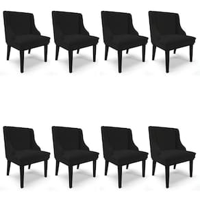 Procurando conforto e praticidade? Confira o Kit 8 Cadeiras Estofadas para Sala de Jantar Base Fixa de Madeira Preto Lia Linho Preto, da Ibiza.