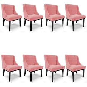 Nada melhor que estar acomodado com uma bela Cadeira confortável, por isso, a Ibiza desenvolveu o Kit 8 Cadeiras Estofadas para Sala de Jantar Base Fixa de Madeira Preto Lia Suede Rosê, confira os detalhes!