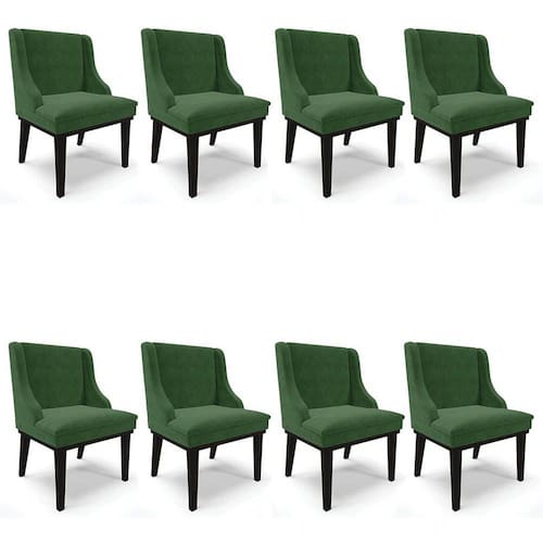 Nada melhor que estar acomodado com uma bela Cadeira confortável, por isso, a Ibiza desenvolveu o Kit 8 Cadeiras Estofadas para Sala de Jantar Base Fixa de Madeira Preto Lia Suede Verde, confira os detalhes!