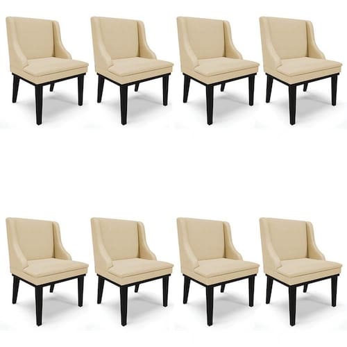 O Kit 8 Cadeiras Estofadas para Sala de Jantar Base Fixa de Madeira Preto Lia Veludo Luxo Off White, da Ibiza, vai dar trazer aconchego e elegância para sua casa, confira!
