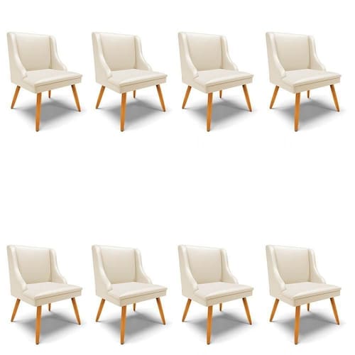 Conforto e estilo são as palavras que definem o Kit 8 Cadeiras Estofadas para Sala de Jantar Pés Palito Lia Sintético Bege, da Ibiza, confira os detalhes e se encante!