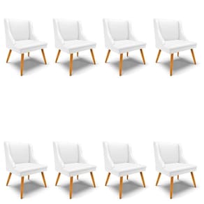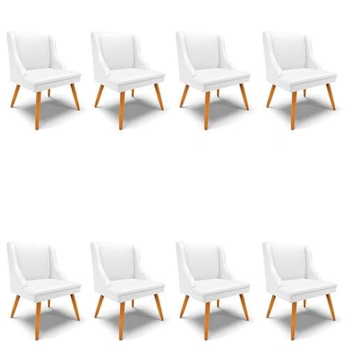 Conforto e estilo são as palavras que definem o Kit 8 Cadeiras Estofadas para Sala de Jantar Pés Palito Lia Sintético Branco, da Ibiza, confira os detalhes e se encante!