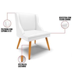Além de combinar com vários estilos de decoração, a Cadeira Estofada com Pés Palito vem ganhando o coração das casas brasileiras, deixando-as mais charmosas com um leve toque retrô! Pensando nisso, a Cadeira Estofada Lia foi projetada para dar um toque elegante e clean na decoração desde a Sala de Jantar, Sala de Estar, Varanda até Área Gourmet, tornando o ambiente especial para reunir a família e os amigos garantindo momentos memoráveis! O móvel é produzido com madeira de eucalipto de reflorestamento, ecologicamente correto, conferindo qualidade, segurança e resistência! A parte estofada é composta por espuma macia densidade D-23 e tecido Sintético, macio, durável e de fácil limpeza.