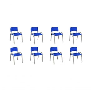 Kit 8 Cadeiras Infantil Iso, Escola, Base Cinza- Azul
