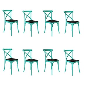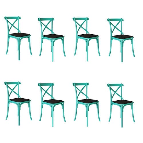 AS IMAGENS SÃO MERAMENTE ILUSTRATIVAS E PODEM SOFRER VARIAÇÕES DE COR E PEQUENOS DETALHES DE ACORDO COM O SEU MONITOR, ILUMINAÇÃO DO AMBIENTE E ATÉ MESMO A SUA PERCEPÇÃO VISUAL.Kit 8 Cadeiras Katrina Assento Corano Preto AÃo Azul Turquesa