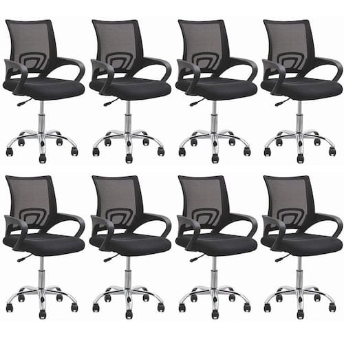- Acabamento: Espuma Injetada de Alta Densidade Altura do Conjunto: 90 cm Ambiente: null Ambiente Principal: Escritório Cor: Preto Informação Complementar: 2x Kit 4 Cadeiras para Escritório Diretor Executivas Giratória Tela Mesh Preto Largura: 60 Altura: 90 Peso: 8 Profundidade: 60 Necessita Montagem: Sim