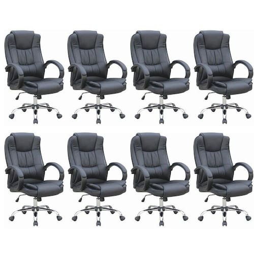 Possui gomos aliados a estrutura, o que remete ao encaixe perfeito do espaldar e garante a ergonomia do usuário. Altura do Conjunto: 110 cm Ambiente: null Ambiente Principal: Escritório Cor: Preto Informação Complementar: 8x Cadeira para Escritório Presidente Master Soft Preto Largura: 55 cm Altura: 110 cm Peso: 13 kg Profundidade: 55 cm Necessita Montagem: Sim