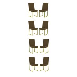 Você receberá 4 volumes, ou seja, oito Cadeiras Estofadas para Mesa de Jantar com Base Industrial Dourado.