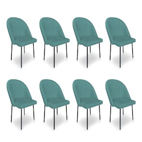 Kit 8 Cadeiras Poltrona De Jantar Ariel Suede Azul Turquesa Pés De Ferro Preto - Pallazio