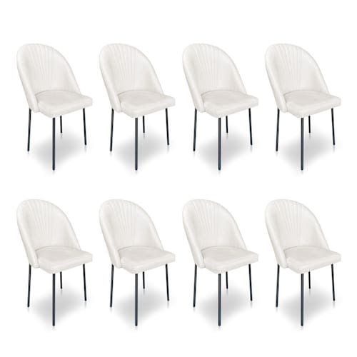 Kit 8 Cadeiras Poltrona de Jantar Ariel Suede Bege Pés de Ferro Preto - Pallazio