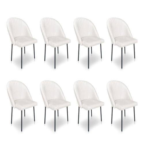 Kit 8 Cadeiras Poltrona De Jantar Ariel Suede Pés De Ferro Preto - Pallazio Cor Rosa Bebê