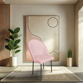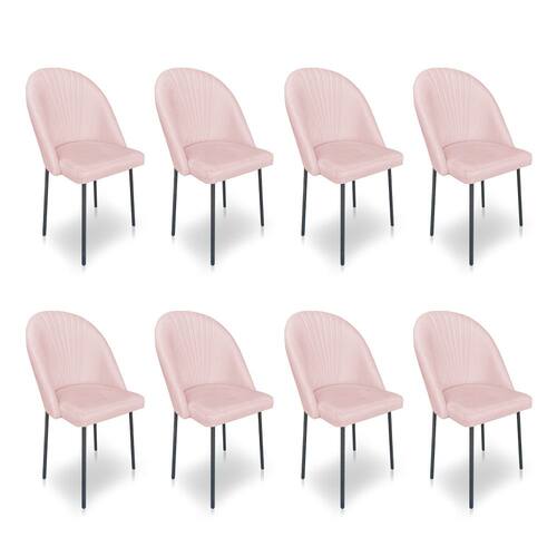 Kit 8 Cadeiras Poltrona de Jantar Ariel Suede Pés de Ferro Preto - Pallazio - Rosa Claro
