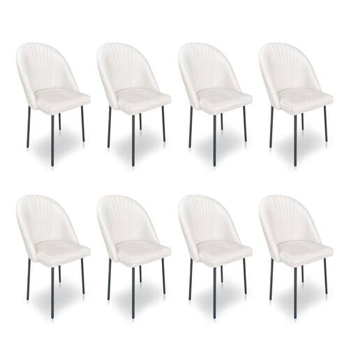 Kit 8 Cadeiras Poltrona de Jantar Ariel Suede Pés de Ferro Preto - Pallazio - Bege