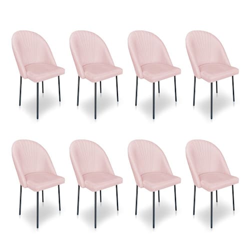 Kit 8 Cadeiras Poltrona de Jantar Ariel Suede Rosa Bebê Pés de Ferro Preto - Pallazio - Rosa Claro