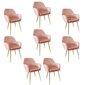 Kit 8 Cadeiras Poltrona Lines com pés dourados Suede Verde Escuro -