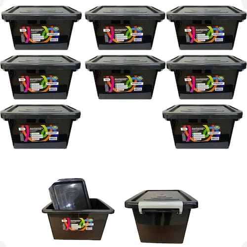 Caixa organizadora preta 10l empilhável trava e rodizio
