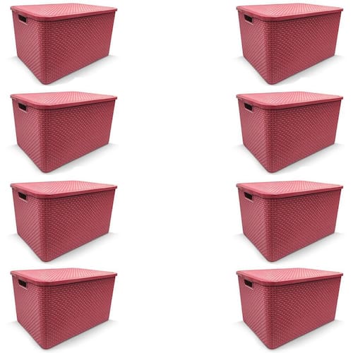 Kit 8 Caixa Organizadora Rattan Decorativa com Tampa ORGANIZADOR RATTAN com TAMPA 07 LITROS - ROSA