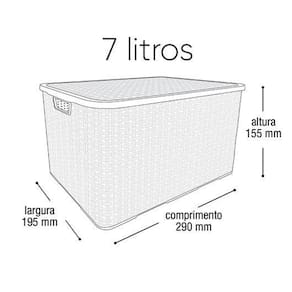 Ótima para organizar pequenos objetos que ficam espalhados pela casa, para organizar seu escritorio, seu ambiente de estudos, Costura Bijouterias Games Eletrônicos Possui ótimo espaço de armazenamento micro orifícios para não mofar tampa com travamento perfeito Combine a Caixa Organizadora Rattan 07 Litros com seu ambiente e use-a como item de decoração. cozinha, sala, quarto e escritório Possui micro furos para não mofar o conteúdo a ser armazenaddo