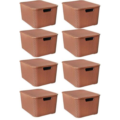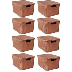 Kit 8 Caixas Organizadoras Rattan Marrom 40 Litros com Tampa 25602 Arqplast Kit 8 Caixas ORGANIZADORas RATTAN com TAMPA 40 MARROM 25602 ARQPLAST