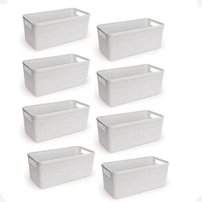 Kit 8 cesto juta organizador alongado medio decoração branco 3,7l Cesto juta alongado branco medio x005fx005fx005fx000d