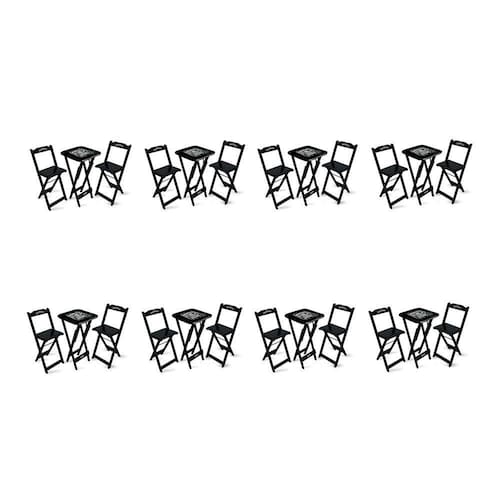 Kit 8 Conjuntos De Mesa Bistrô Dobrável Jack Daniel S Com 2 Banquetas De Madeira Preta