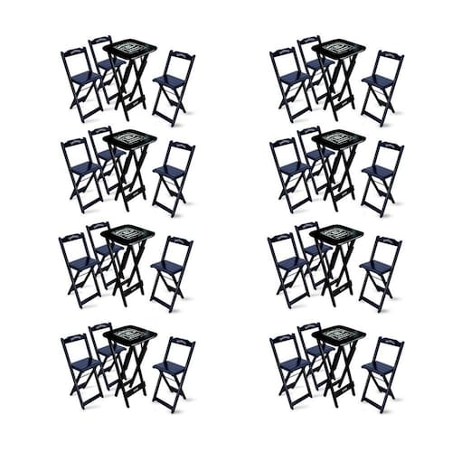 Kit 8 Conjuntos De Mesa Bistrô Dobrável Jack Daniel S Com 3 Banquetas De Madeira Preta