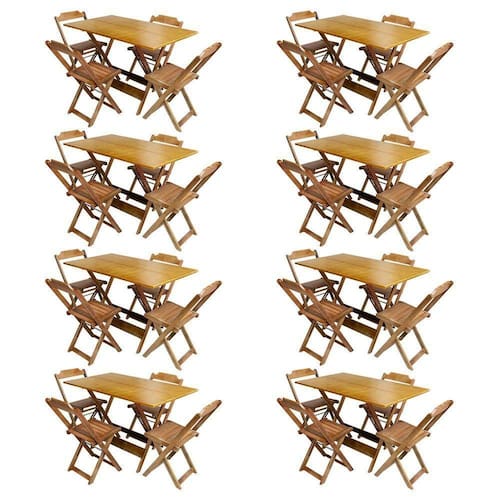 Kit 8 Conjuntos De Mesa Com 4 Cadeiras De Madeira Dobravel 120x70 Mel - Cor: Amarelo
