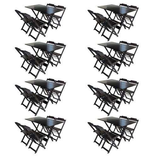 Kit 8 Conjuntos De Mesa Com 4 Cadeiras De Madeira Dobravel 120x70 Tabaco - Cor: Marrom
