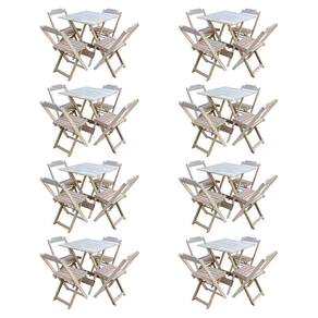 Kit 8 Conjuntos De Mesa Com 4 Cadeiras De Madeira Dobravel 70X70 Sem Pintura/Crua - Marrom