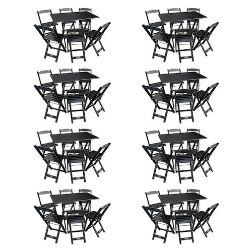 Kit 8 Conjuntos De Mesa Dobráveis De Madeira 70x110cm Com 6 Cadeiras Preta