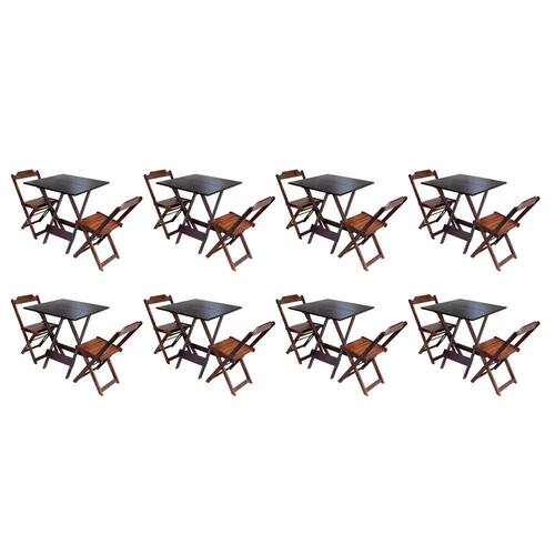 Kit 8 Conjuntos De Mesa Dobravel Com 2 Cadeiras De Madeira 70x70 Ideal Para Bar E Restaurante - Imbuia é ideal para bares, restaurantes, estabelecimentos, áreas de lazer e também para sua casa. Seu design permite que seja encaixado em qualquer ambiente, trazendo um toque a mais para seu estabelecimento. Além de sua durabilidade, o que lhe trará conforto para servir seus clientes. Por ser dobrável torna-se mais fácil guardar, manusear e limpar o produto. Atenção: EVITE USAR PRODUTOS ABRASIVOS E QUíMICOS PARA LIMPEZA DO PRODUTO, aconselha-se o uso de pano umedecido para melhor conservação; mantenha o produto fora de chuva e sol constantes. Dimensões: Medidas da Mesa: Altura: 76cm Largura: 70cm Comprimento: 70cm