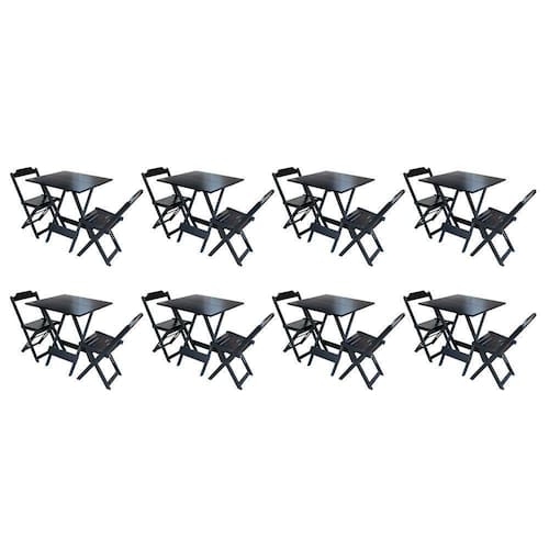 Kit 8 Conjuntos De Mesa Dobravel Com 2 Cadeiras De Madeira 70x70 - Preto - Cor: Preto