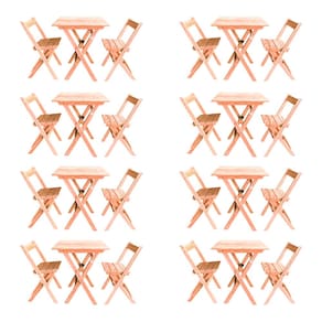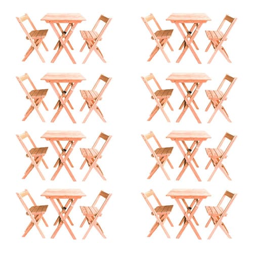 Kit 8 Conjuntos Mesa Dobrável Para Bar E Restaurante 60x60cm Com 2 Cadeiras Em Madeira Maciça - Cru - Bege