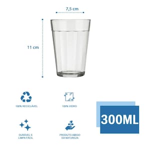 Jogo com 8 Copos De Vidro 300ml Americano Nadir Figueiredo