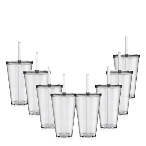 Kit 8 Copos Big Drink Tampa E Canudo Acrílico Transparente Copo com Tampa e Canudo de 550 ml é perfeito para todo tipo de bebida, como água. Suco, shake e drinks em geral. Quantidade: 8 peças Material: Acrílico PS Cor: Transparente Tamanho: Único Ean: 7897581906417
