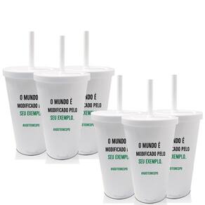 Kit eco com copos com tampa e canudo eco personalizados para ajudar o meio ambiente. Adote o seu copo e evite descartáveis. Juntos somos mais fortes. Confira as opções de copos, taças e canecas ecológicas personalizadas. Especificações: Material: Acrílico PS Altura: 14,5 cm Diâmetro: 9,5 cm Capacidade: 550 ml Cor: Branco Quantidade: 8 peças