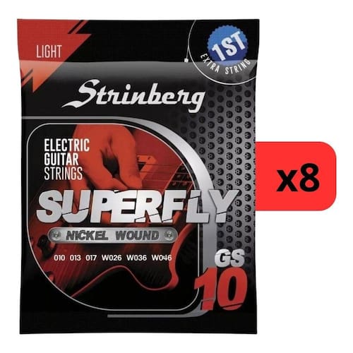 Kit 8 Encordoamento Strinberg Para Guitarra GS10 - 6 CordasO Kit 8 Encordoamentos Strinberg para Guitarra GS10 de 6 cordas é a escolha perfeita para elevar o desempenho da sua guitarra. Com qualidade e durabilidade excepcionais, esses encordoamentos proporcionam um som claro e vibrante, permitindo que você explore todo o potencial do seu instrumento. Seja para tocar acordes encorpados ou solos expressivos, o Kit 2 Encordoamentos Strinberg GS10 garante uma resposta precisa e um tom consistente. Renove o som da sua guitarra e adicione um toque profissional às suas apresentações com esses encordoamentos confiáveis e de alta qualidade.Especificações Técnicas:• Modelo: GS-10• Espessuras: 1º - .010 / 2º - .013 / 3º - .017 / 4º - .026 / 5º - .036 / 6º - .046• Revestimento de bordões: Níquel.Conteúdo da Embalagem:• Kit 8 Encordoamento Strinberg Para Guitarra GS10 - 6 Cordas• Manual e Certificado de GarantiaImportante:• Garantia de 90 Dias.• Valor Kit.