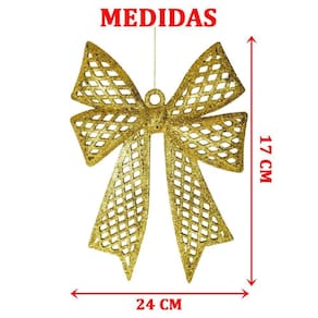 Kit 8 Enfeites árvore De Natal Laço Dourado Glitter 24cm Kit 8 Enfeites Árvore De Natal Laço Dourado Glitter 24cm - Laço Dourado de Natal