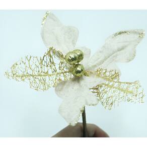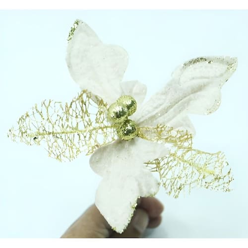O cabo flexível e resistente permite uma integração harmoniosa em arranjos, guirlandas ou árvores, tornando-a versátil para qualquer cenário natalino. Esta flor não é apenas um adorno; ela é uma expressão de festividade e refinamento, garantindo que sua decoração capture o verdadeiro espírito e a elegância do Natal. Um toque de charme que promete ser o destaque em suas comemorações!