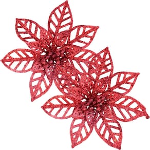 4 Conjunto com 2 Peças Flores Vermelhas Enfeite Para Árvore De Natal;