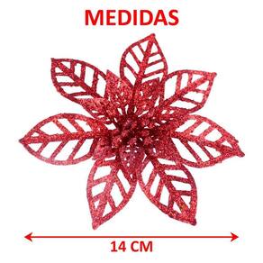 Kit 8 Flores Vermelha Gliter Decoração árvore De Natal 14cm